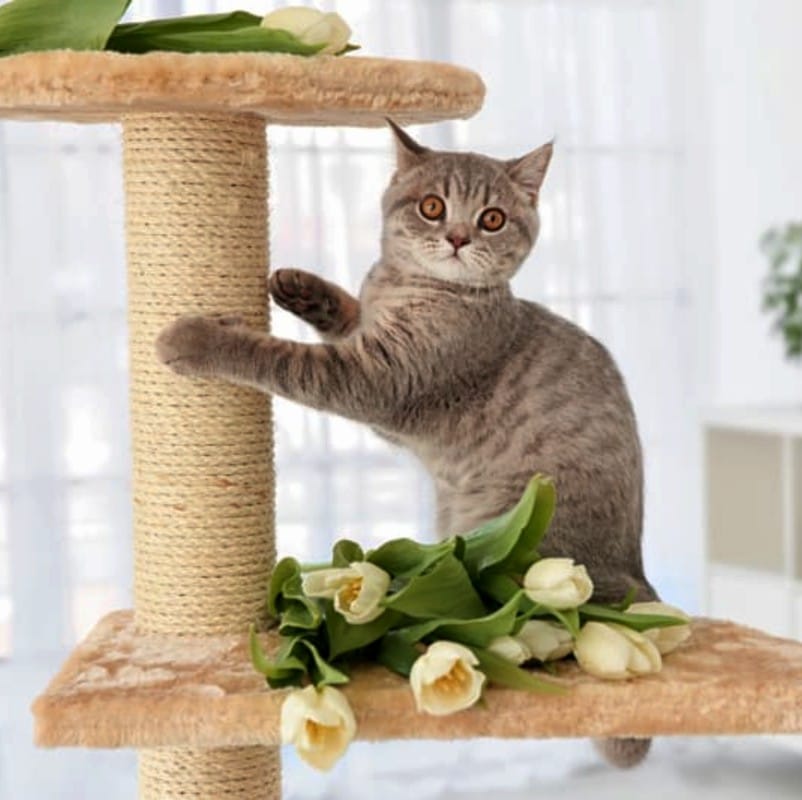 Cómo su nombre lo indica, la principal función del árbol es servir a modo de rascadores para gatos. Por ello es imprescindible que varias partes de la estructura estén elaboradas con materiales ásperos y resistentes que permitan a tu gato rascar o arañar, como sisal, yute o cartón.