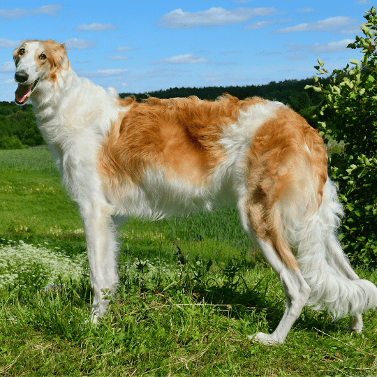 El Borzoi es un perro de origen ruso. Pertenece a la familia de los lebreles y tienen la apariencia de un perro de pelo largo con aspecto de galgo. También conocido como perro lobo ruso. Se encuentran entre las razas de perros más rápidas, un velocista.